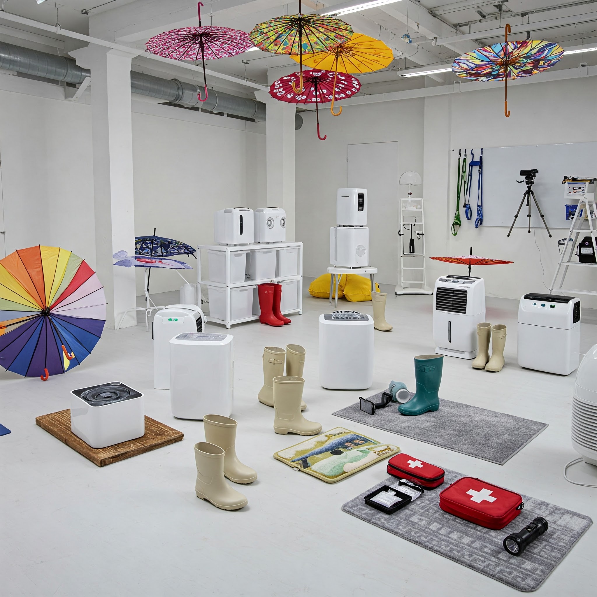2. 안전 관리 용품: * 미끄럼 방지 매트/테이프: 현관, 욕실, 베란다, 계단 등에 부착하여 미끄럼 사고를 예방합니다. * 안전 손잡이: 욕실이나 계단 벽면에 설치하여 이동 시 안정감을 더해줍니다. * 전선 정리함/케이블 타이: 전선 노출을 최소화하고 습기로 인한 누전 위험을 줄여줍니다. * 휴대용 손전등: 정전 시 어둠 속에서 안전하게 이동할 수 있도록 도와줍니다. * 구급 상자: 소독약, 밴드, 소화제, 지사제 등 기본적인 구급 용품을 미리 준비해두세요. * 창문 잠금 장치: 강풍으로 인한 창문 파손 및 이탈을 방지합니다.